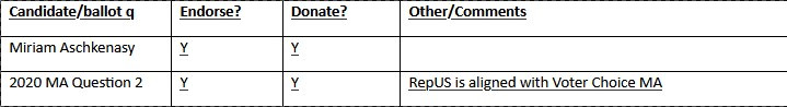 Elected/appointed gov’t & public interest group offices held, especially local, and including committees: Chapter Lead, RepresentUS Massachusetts