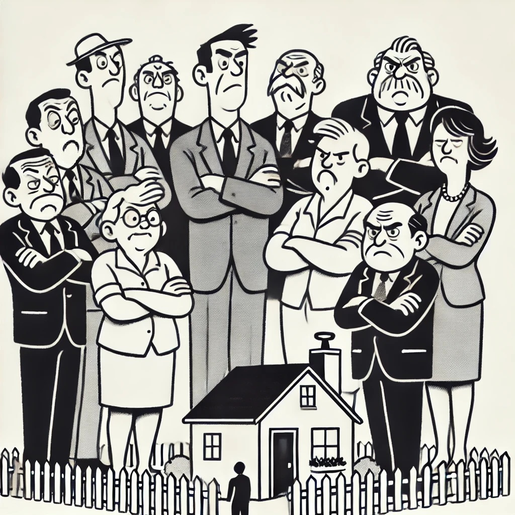 No distinction is made by the zoning process between an established family changing a building for themselves and an outsider looking to impose their vision on your community. You should feel no need to distinguish between them either. Begin by only referring to your neighbors as developers — this removes any risk of sympathy clouding the judgment of town officials. Your neighbor’s house is not a home, it is a structure. Their bedroom is an extension. The presence of construction in your neighborhood is an encroachment. It’s best not to talk about the person as a neighbor at all, since it’s well known that someone imagining they have a right to change their property in a way you have not agreed to is most unneighborly.